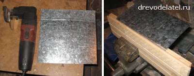 Вырезаю из листового железа заготовку для крыши, сгибаю пополам.