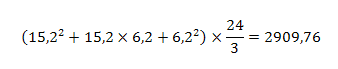 Например, у нас есть пасочница с такими размерами: a = 15,2 см, b = 6,2 см, h = 24 см.