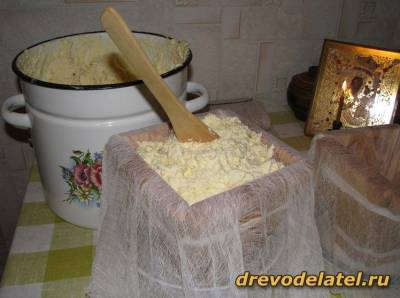 Накрытие творожной массы марлей