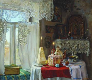 Пасхальный стол, если смотреть на него с гурманской точки зрения, довольно беден: крашеные яйца, кулич, да сладкая творожная масса. Если же посмотреть на праздничный стол взглядом человека, постившегося 40 дней и соблюдавшего строгие православные правила воздержания, то эти три блюда будут пиром. И зачастую так и выходит, ведь приготовленный из лучших компонентов кулич с пасхой из свежайшего творога и с ароматным чаем повергает постившегося в кулинарное наслаждение, которое, однако, нельзя назвать чревоугодием.