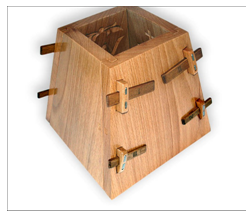 В зависимости от мастера пасочницы стали различаться по виду скрепления сторонок, так, сторонки собираются с помощью вырезанных уголков, или пазов-шипов, или просверленных отверстий и вставляемых в них деревянных палочек, или даже металлических петелек (да-да! В последнее время на просторах интернета попалась мне фотография такой пасочницы :-)).