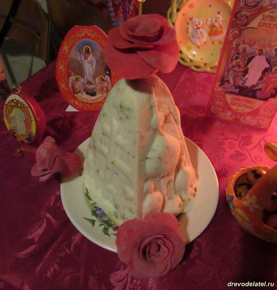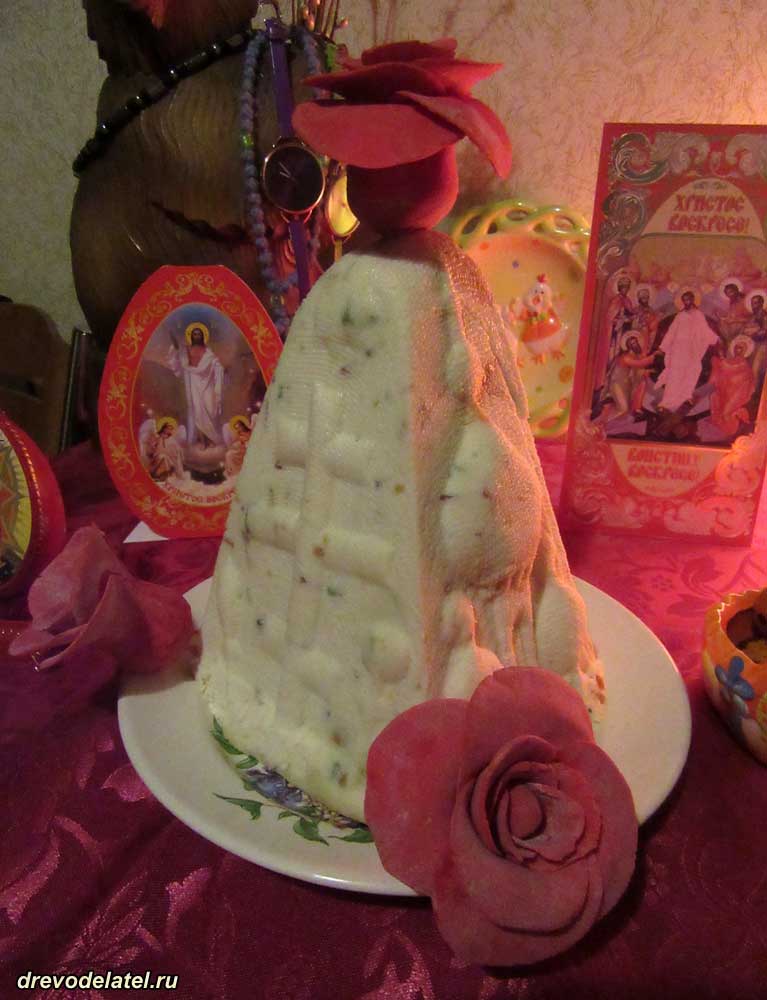 Ну и пару слов о самих пасхах, которые традиционно делала моя мама, Ирина Матвейчук. Пасхи, как и всегда, получились потрясающие, очень вкусные и нежные. И, конечно, благодаря не только мастерству мамы, но и моим деревянным резным пасочницам!