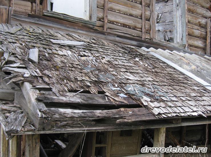 Если основная крыша аккуратно покрыта железными листами, то на крыше боковых сеней можно увидеть дранку.
