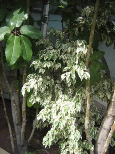 На те непривычно могучие растения, практически деревья, которые в наших московских квартирах еле-еле растут в своих горшочках, вот, например, фикус.