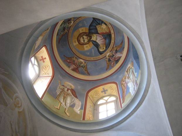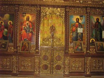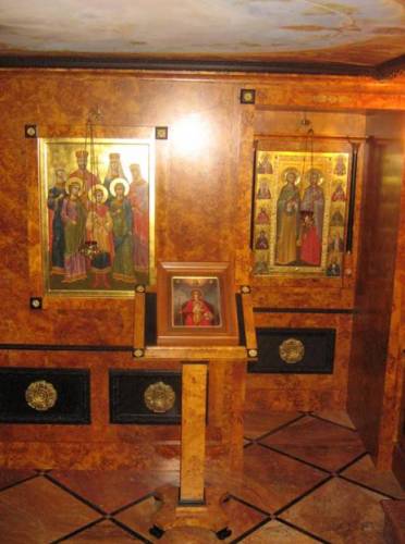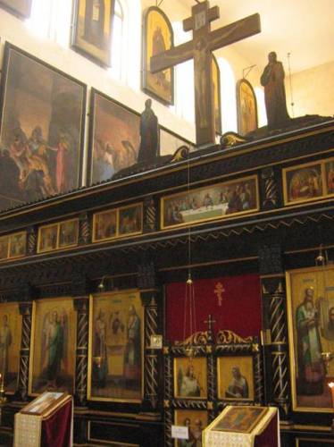Бродим по узким проходам монастыря.Заглянули в одну из келий в окно, а там только тумбочка и кровать, и всё. Великолепный храм, резьба, иконы…