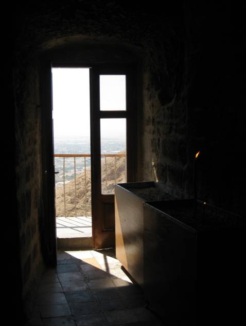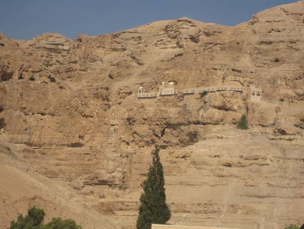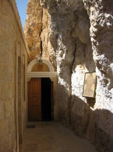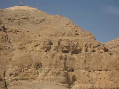 Где-то на этом месте Господь молился 40 дней и ночей, и был искушаем дьяволом. Как же Господь туда добрался? Как находился? Жара, сушь, высота. Какие же трудные пути преодолевал Иисус Христос! Уму непостижимо.