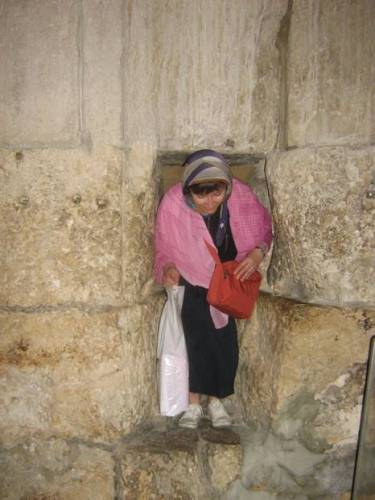Проход действительно очень узкий, полный и тучный человек точно в него не протиснется, не то, что верблюд. Так что евангельское изречение «Легче верблюду пройти сквозь игольное ушко, чем богатому войти в Царствие Небесное» вполне практично имеет в виду реальные ворота, а не непонятное в данном случае не знающему читателю ушко иглы. Хотя, конечно, если представлять иглу, то сравнение получается намного эффектнее ;-)