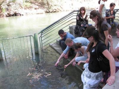 Приезжаем к реке Иордан. Лион, как всегда, очень подробно, заботливо инструктирует нас, как и что делать, и где и как выгодней. Очень предусмотрительный человек. Мы все отправились к реке. Заплатив по 2$ или 7 шекелей за вход в раздевалку, переоделись в заранее приготовленные рубахи,