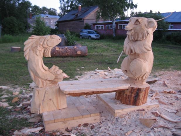 Множество скульптур, мне очень понравились деревянные скульптуры, выполненные бензопилой.