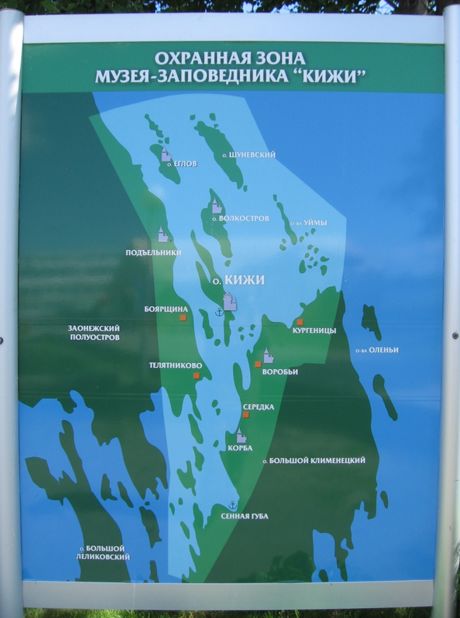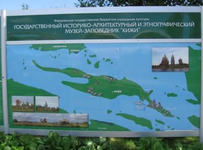 Тут же размещены стенды с картами Кижей и окрестных островов.