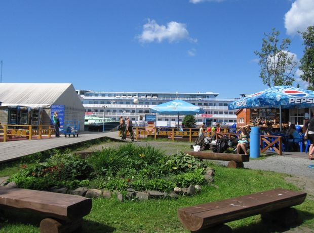 Приплыли, теплоход пришвартовался к причалу, а мы пока задержались на пристани.