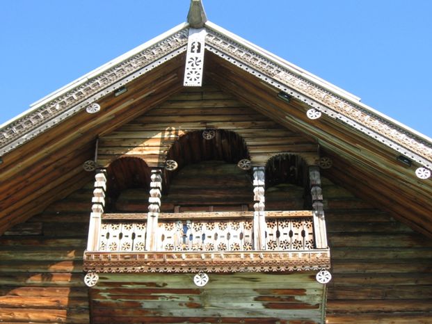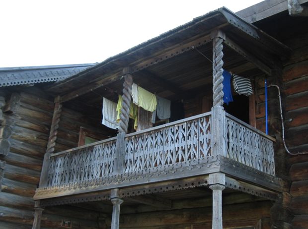 Ну а вторым потрясением – необычайно богато украшенные избы. Я только и делал, что фотографировал через зум все эти разнообразные резные причелины, полотенца, наличники, столбики, карнизы, все эти фотографии я решил выложить в отдельных фотогалереях.