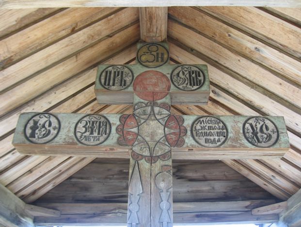 Поклонился поклонному кресту чудесной работы – он украшен не только резьбой, но и росписью.