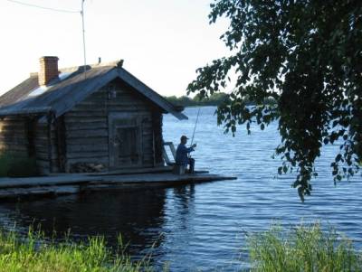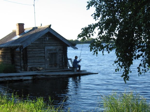 Первым моим сильным впечатлением в Кижах было то, что, оказывается, все эти красивейшие старинные избы не стоят пустыми – в них живут сотрудники музея и волонтёры, студенты из гуманитарных вузов, приехавшие сюда на лето проходить практику. Люди живут своей жизнью, ездят по дорогам острова на велосипедах и мотоциклах, косят траву бензокосами, ловят рыбу, моются в банях, купаются.