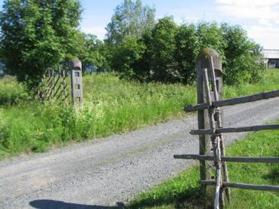 При своей элегантности она изготовлена очень просто, по принципу конструктора Лего, - калитка просто вставляется шипами в пазы столба и из них же, при надобности, вынимается. И никаких металлических петель! О калитках по-кижски я тоже решил написать отдельную статью, вместе с изгородями и воротами.