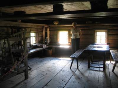 Ещё меня поразила в доме полнейшая аутентичность интерьера! В отличие от Витославлиц и других деревенских изб-музеев, где я был (Коломенское, Новый Иерусалим), где вещи в избе положены как попало и лежат бездушно, в кижских избах реально как будто переносишься машиной времени в дореволюционную эпоху – кажется, что хозяин избы только что вышел. Единственное, чего нет в этих избах, если уж придираться – так это туалетов ;-)
