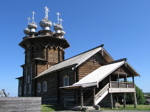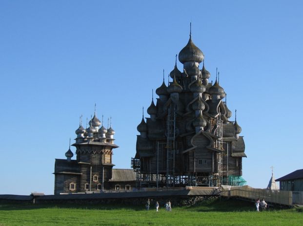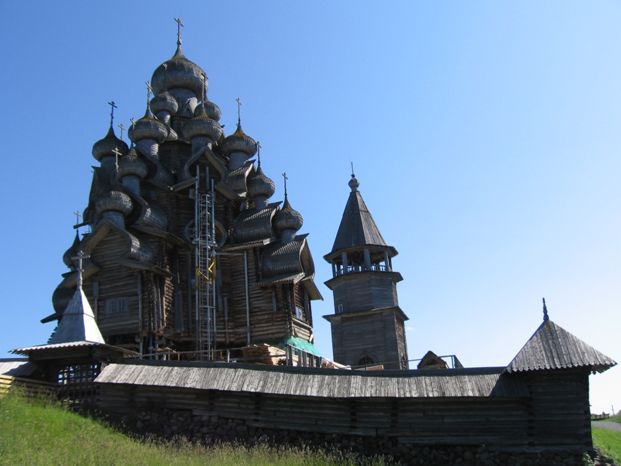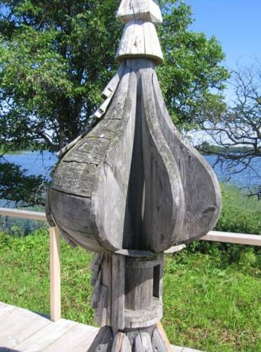 Кстати, когда говорят, что храм построен без единого гвоздя, то либо по незнанию, либо лукавят – на самом деле гвозди всё-таки применялись, что видно на фотках купола – если даже весь храм строили без гвоздя, то лемех прибивали гвоздями.