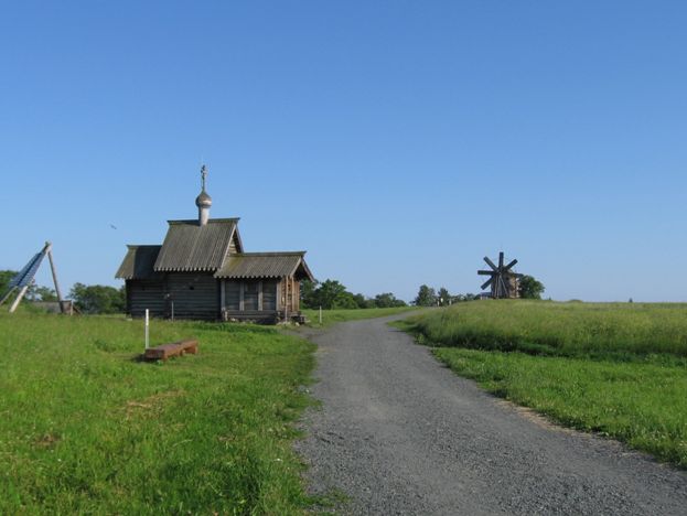 Тем временем мы подошли к Пудожской деревне – здесь стоят привезённые из Пудожского края часовни, избы и амбары.