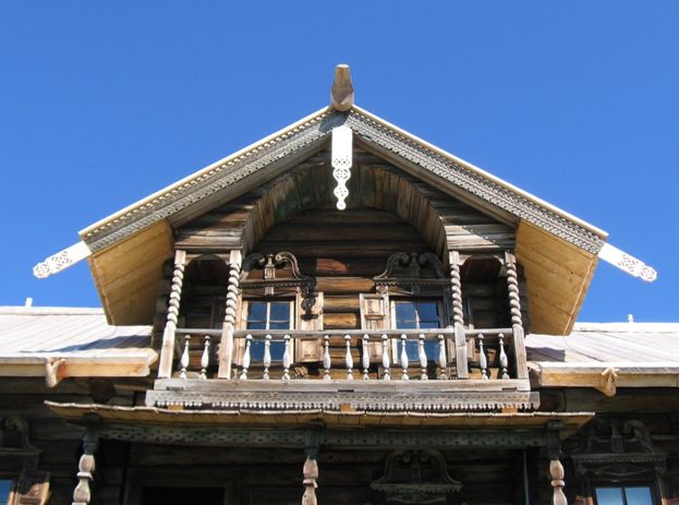 Богато украшенный резьбой, с нарядными светёлкой-балкончиком и гульбищем, дом восхищает!