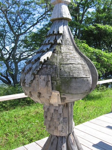 К контурно опиленным стойкам купола прибивались подогнанные стенки. И уже к этим стенкам прибивался лемех – осиновые узорчатые дощечки.