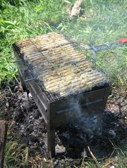 Нашу небольшую расстроенность, вызванную отсутствием главнейших святынь на выставке и недоступностью из-за ремонтов главного помещения в Воскресенском соборе, развеял чудесный пикник с шашлыком, который мы устроили, отъехав недалеко от монастыря, на той же реке Истре.