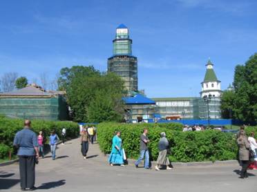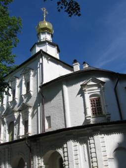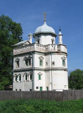 По пути к реке проходим мимо скита патриарха Никона – очень красивое башневидное здание.
