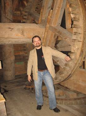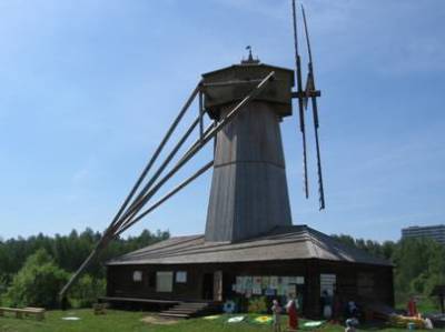Мельница впечатляет! Огромная, высокая, сложенная из большущих брёвен, с крыльями-лопастями.