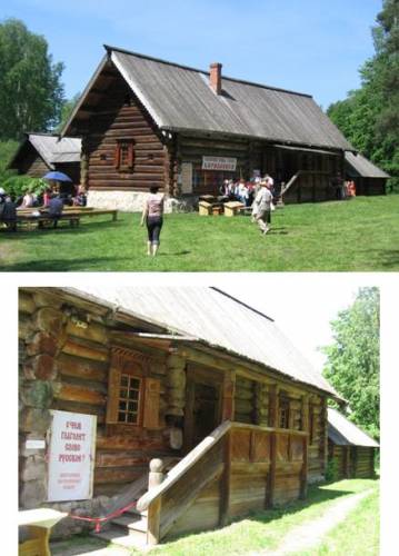 В саму избу тоже обязательно стоит зайти – усадьба интересна как своим устройством, всё под одной крышей, так и внутренним убранством – помимо всего прочего можно увидеть старинные русскую печь и колыбельку.