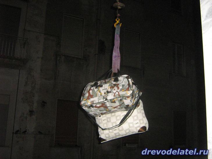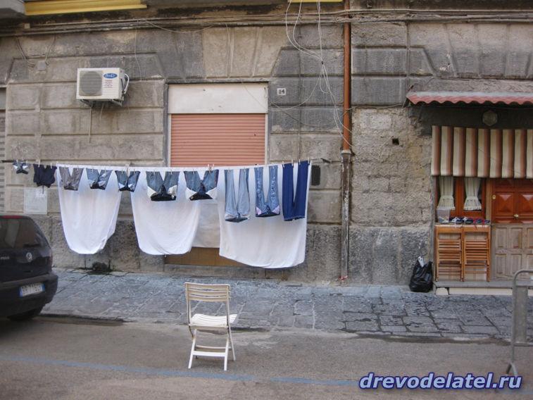 Вернувшись в номер и открыв окно, обнаруживаю трос, спускавшийся сверху откуда-то и по нему туда-сюда то сумки какие-то, то коробка, то рюкзак, а там и второй тросик появился с ведром. Вот приколисты неаполитанцы.