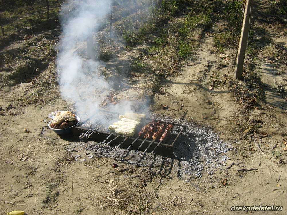 К концу готовки шашлыка на мясо кладётся лаваш, который пропитывается соком и вкусом шашлыка. Очень вкусно!