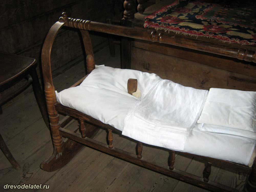 Старинная люлька с деревянным мочеотводом для ребёнка