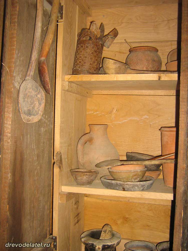 Ещё меня поразила мышеловка деревянная, с хитрым устройством. Надо сказать о том, насколько были изобретательны и рукодельны мастера. Некоторые предметы — загадки, например, выжималка для граната при жарке мяса, или обилие сосудов для питья вина, и каждый сосуд со значением.