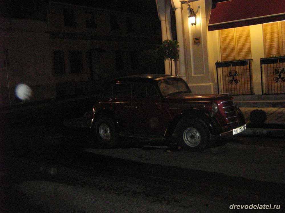 Старинный автомобиль у элитного магазина вин. Ночью улицы в Тбилиси практически не освещены.
