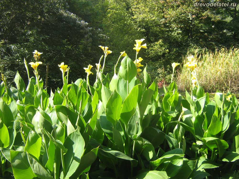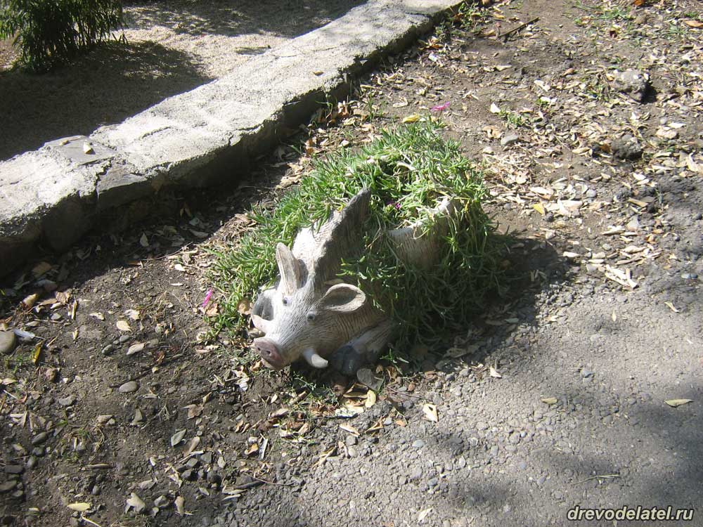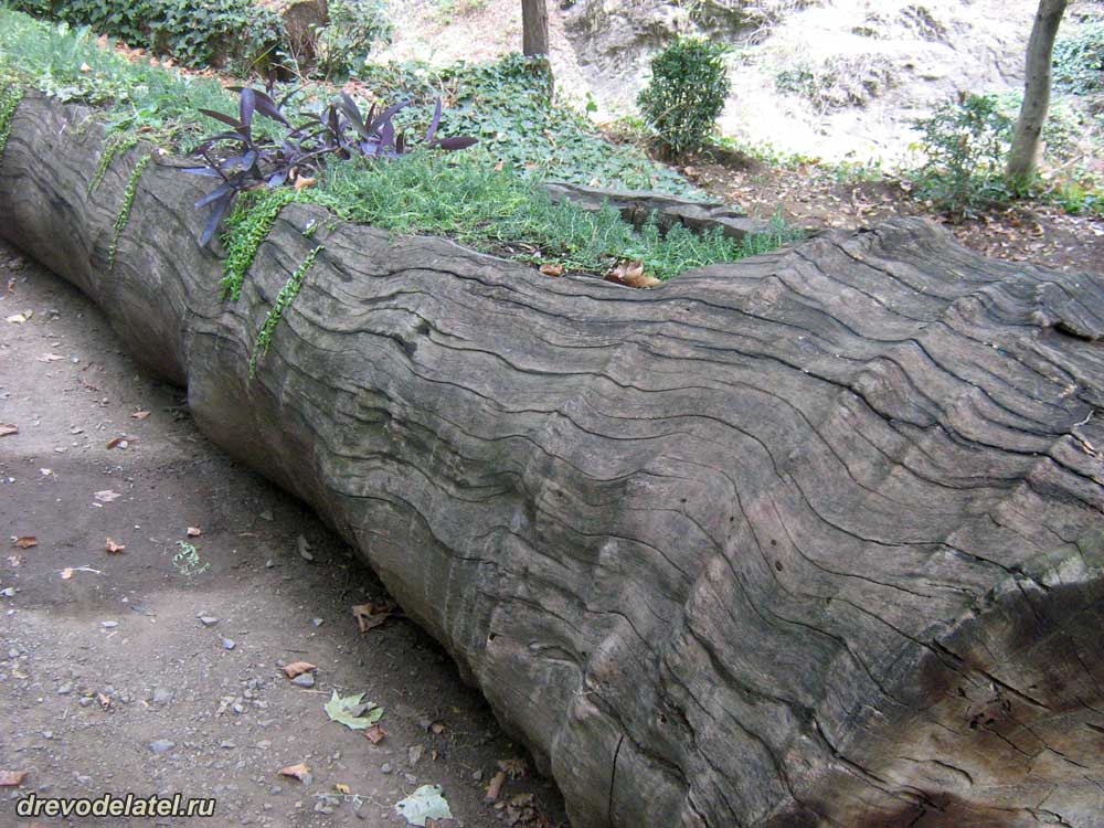 Цветы в выдолбленном огромном бревне