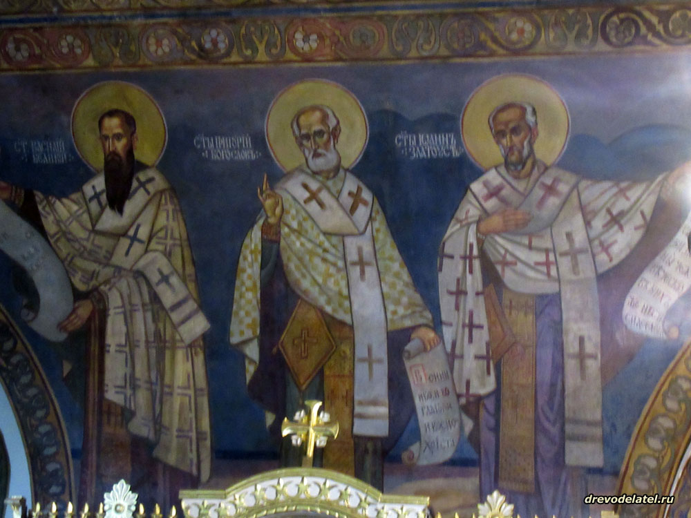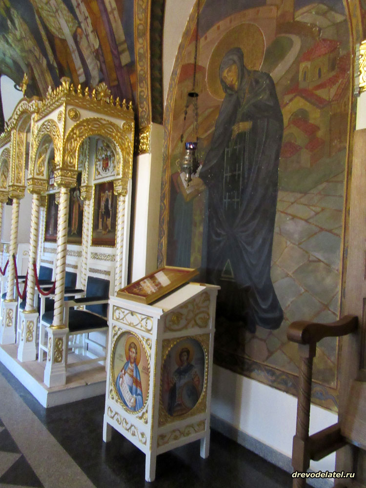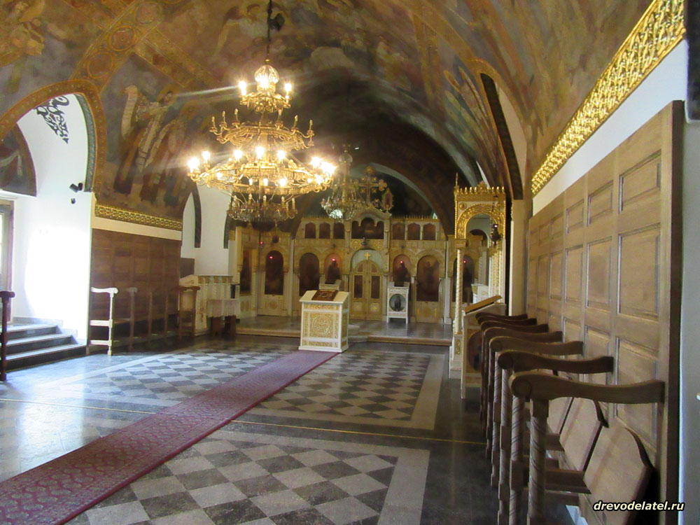 Обстановка и фрески в храме сдержанные, узнаём всех Святых на стенах церкви. И вдруг!.. как в кино… приходит группа молодых мужчин, студентов–семинаристов, и начинают петь по-сербски тропари и величания.