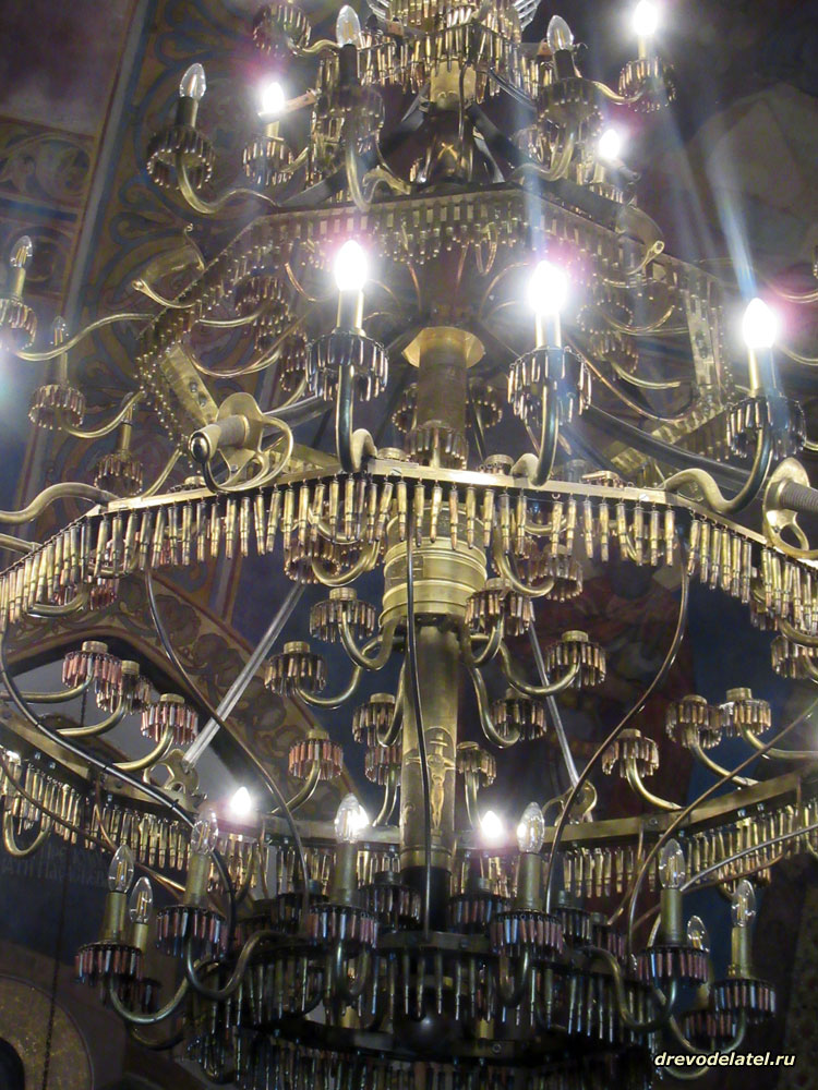 Старинная люстра с пулями и патронами вместо подвесок