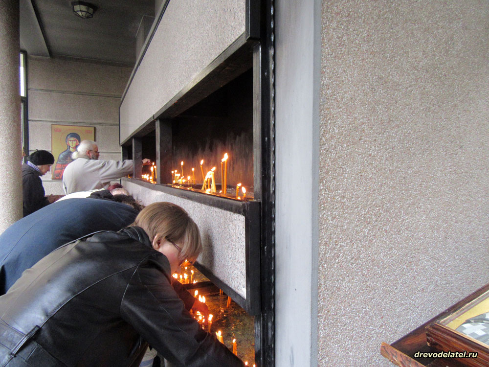 Сербы ставят свечи в подсвечники