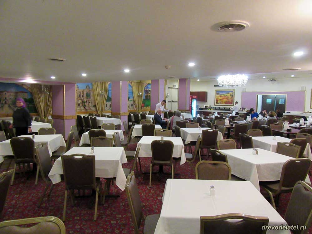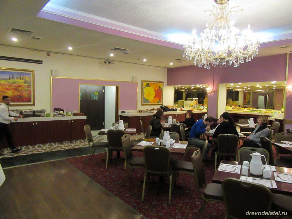 Приехали, идём в наш отель «Иерусалим Голд» на улице Яффа. Наскоро скинув вещи в нашем номере, сразу спускаемся в ресторан отеля на ужин (включённый наравне с завтраком в нашу путёвку). Питание организовано по принципу шведского стола, можно есть всё что хочешь без ограничений.