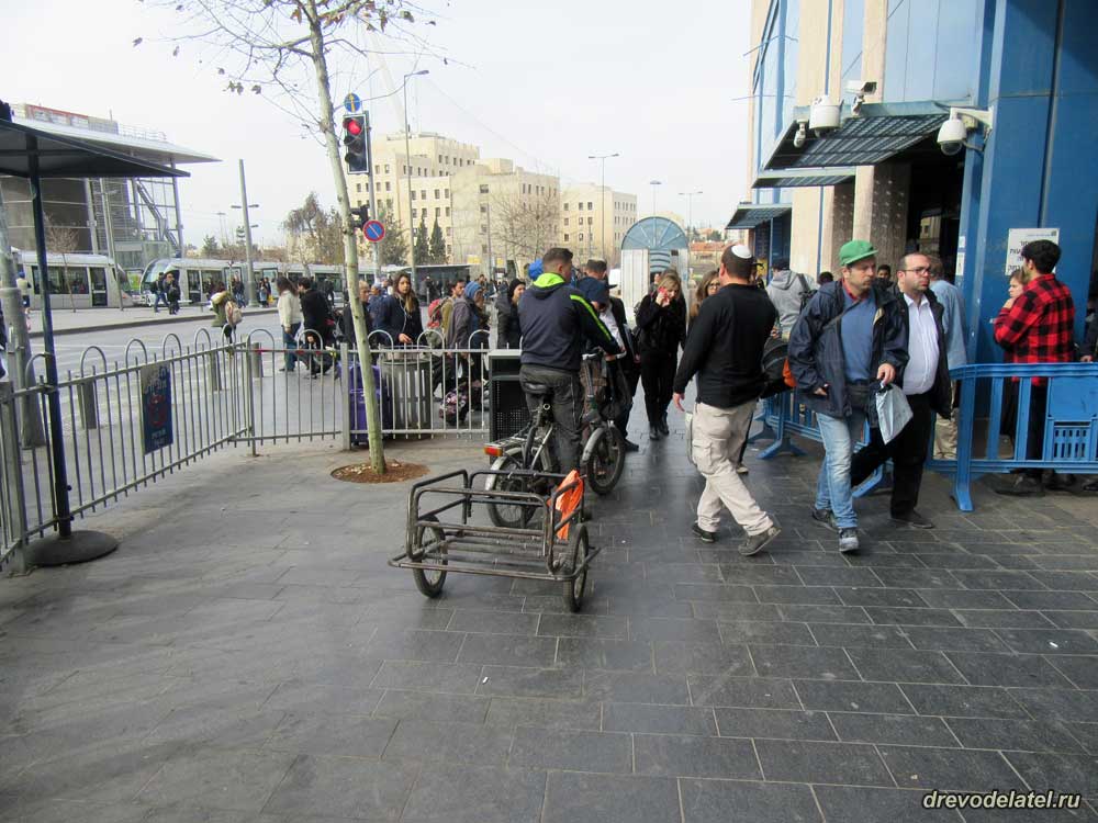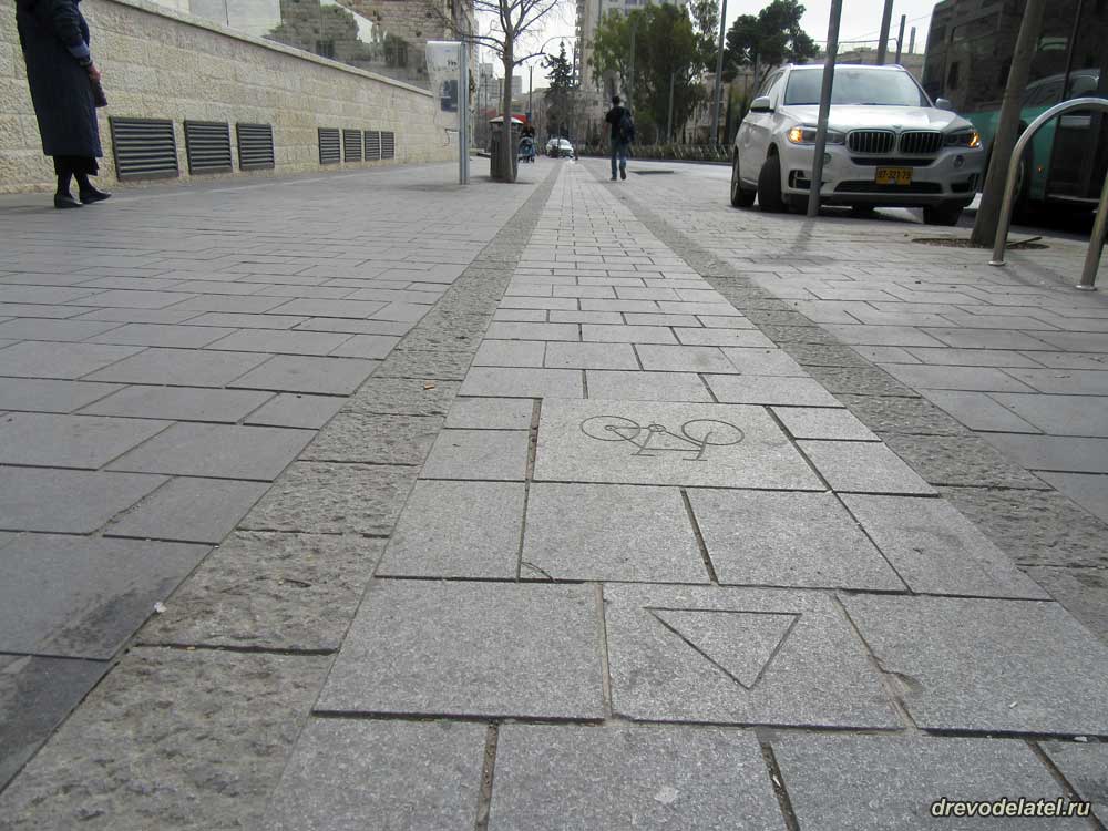 Много велосипедов, как обычных, так особенно с электрическим мотором, есть самокаты. Как потом я выяснил в местном веломагазине, самый лучший электробайк стоит здесь 2000$. И без электромотора здесь никуда — Иерусалим стоит на холмах, перепады высот очень значительные, и крутить педали быстро устанешь. На тротуарах отдельно выделены велодорожки, но велосипедисты всё равно едут как попало.