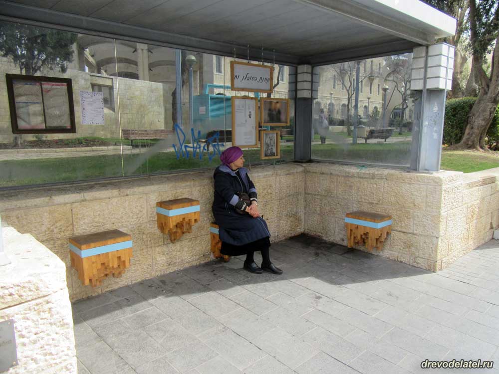 Забавные деревянные сиденья у остановки