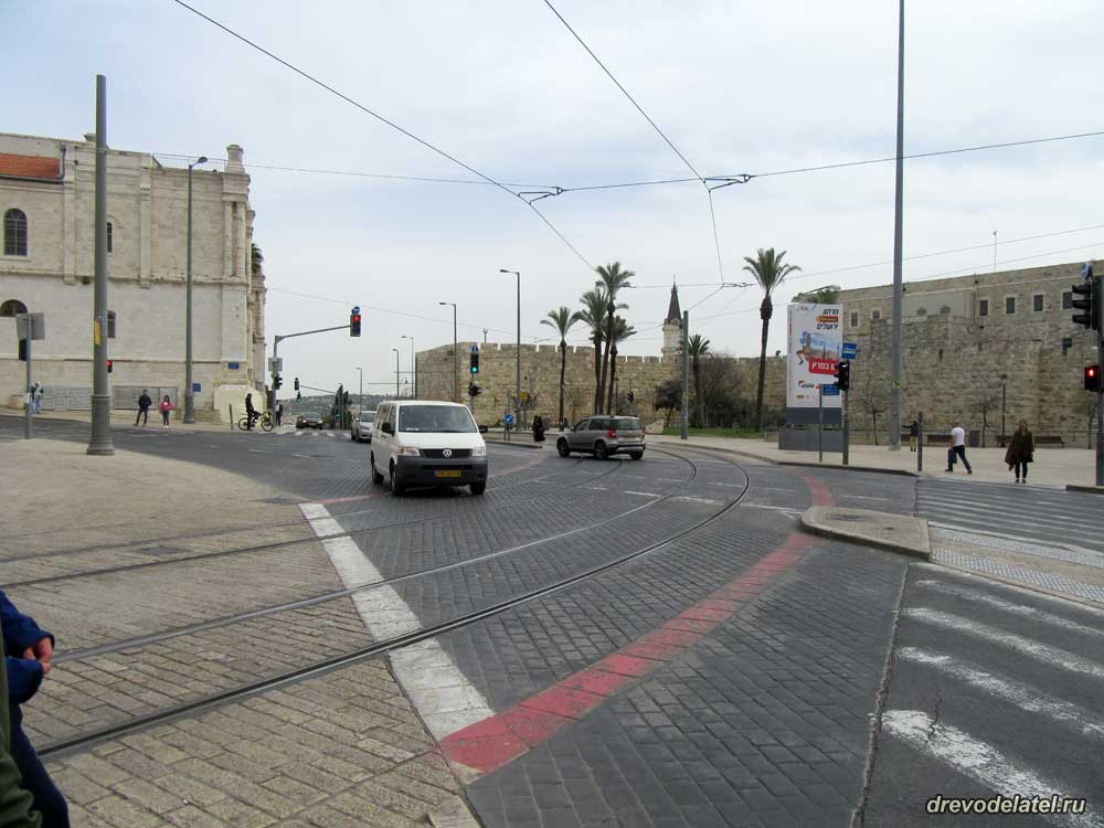 По улице Яффа в Храм Гроба Господня можно прийти пешком за час, или приехать на такси, или сесть на трамвай. Таксисты за поездку просят 50 шекелей, на трамвае же одна поездка стоит 6 шекелей.