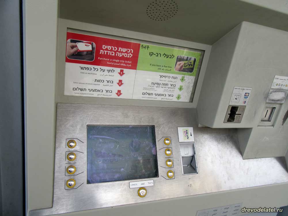 Билеты можно купить на каждой остановке в автоматах, но нужно знать английский, хотя бы на мизерном уровне. Как потом я узнал, общественный транспорт в Израиле отлично развит — и трамваи, и маршрутки, и автобусы, и железнодорожные электрички. Можно купить как билеты на одну поездку, так и проездной на несколько поездок со скидкой.