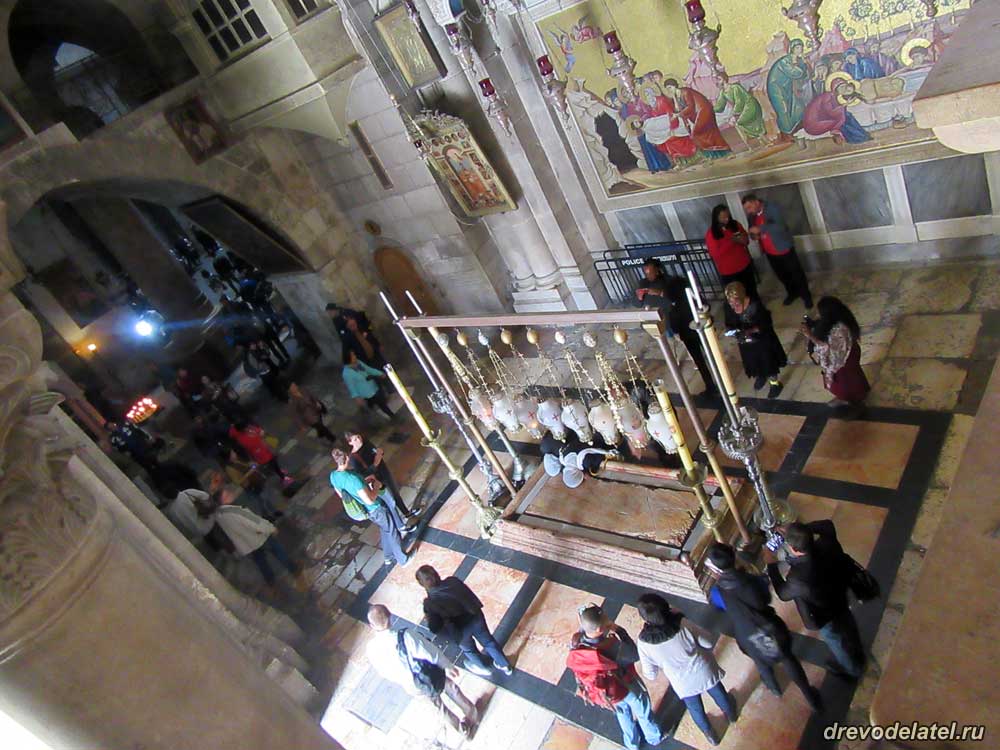 Вид сверху на Камень Помазания, находящийся при входе