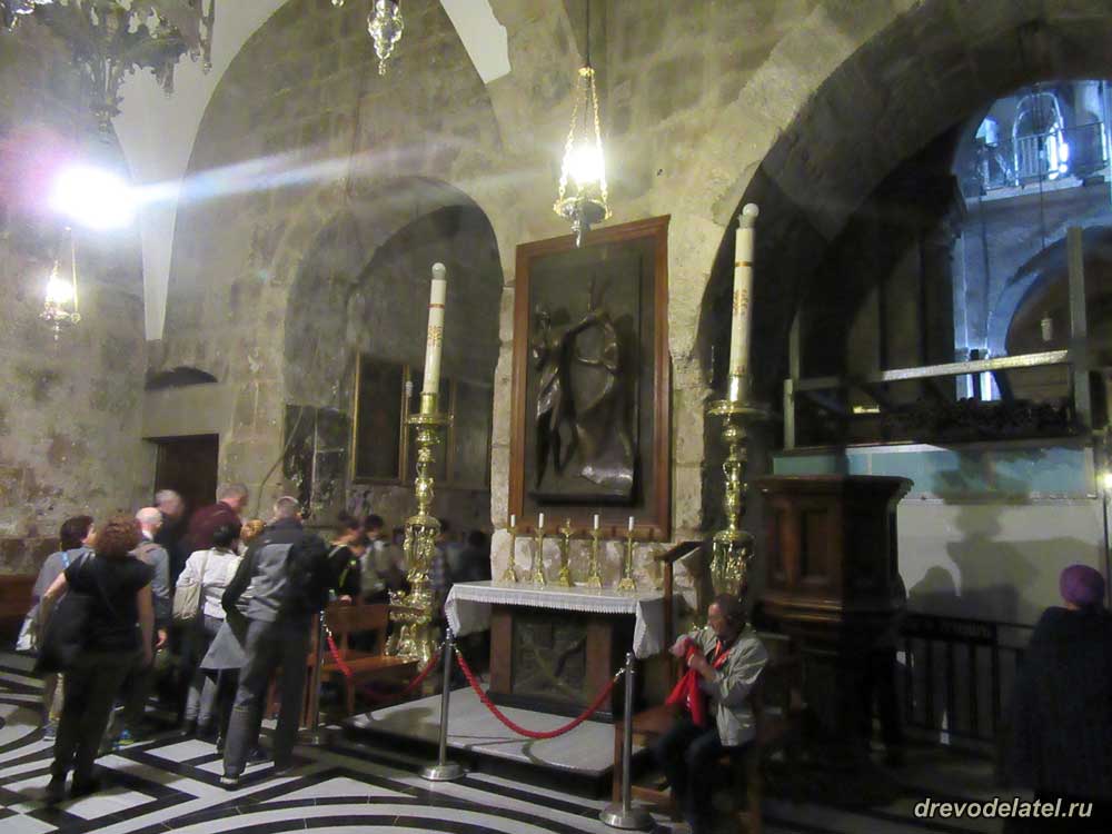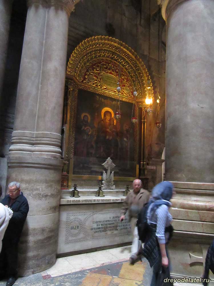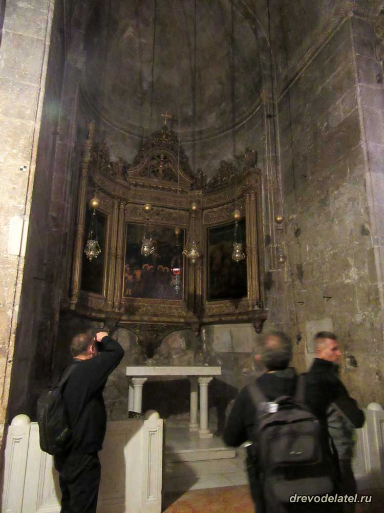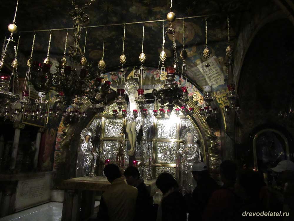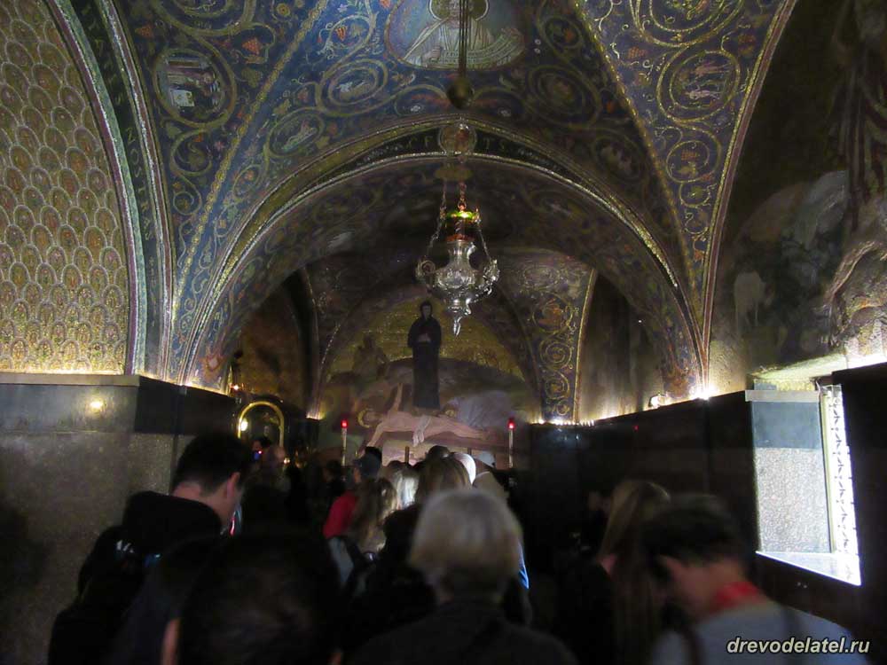 Встаём в очередь к Голгофе. Прямо впереди — католическая Голгофа. Она примечательна алтарём, подаренным герцогом Медичи в XVI веке.