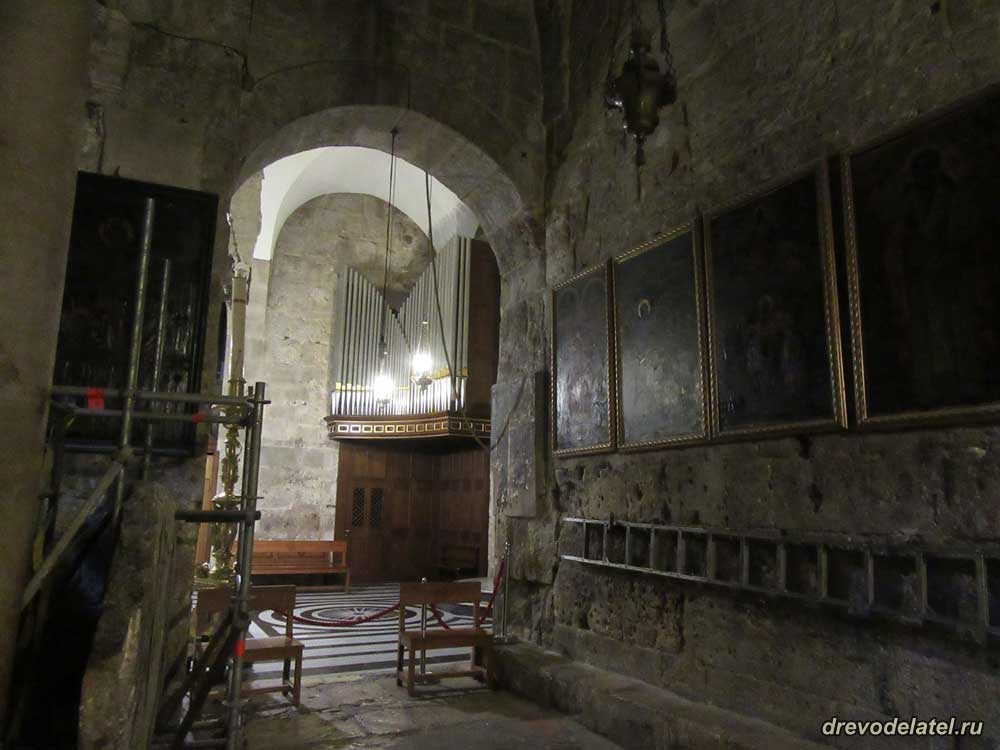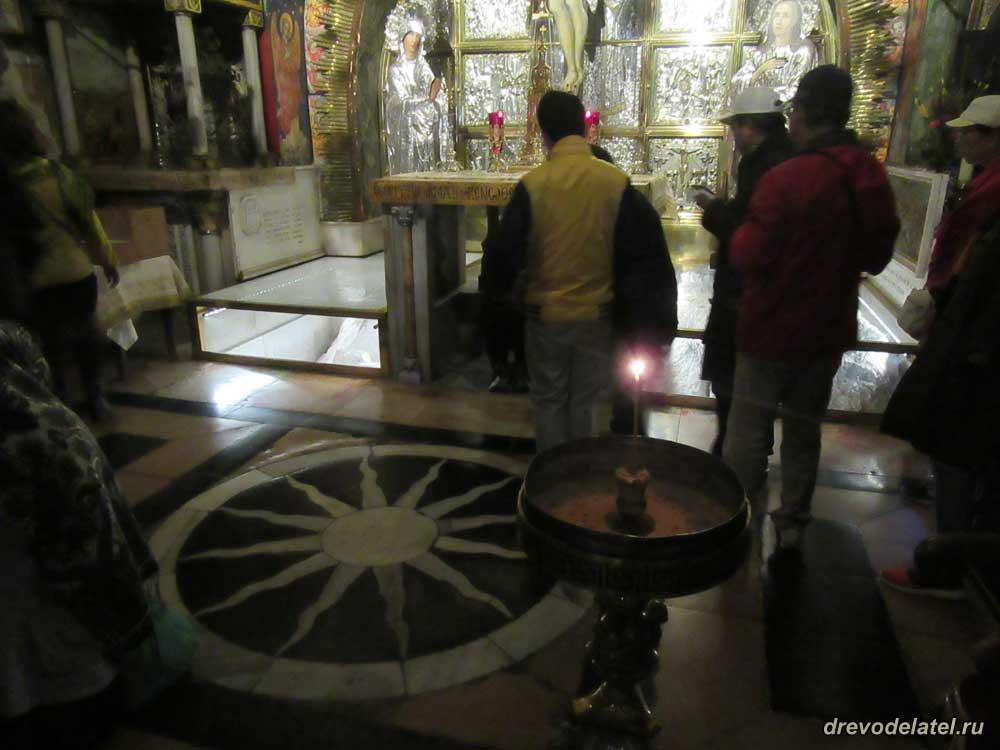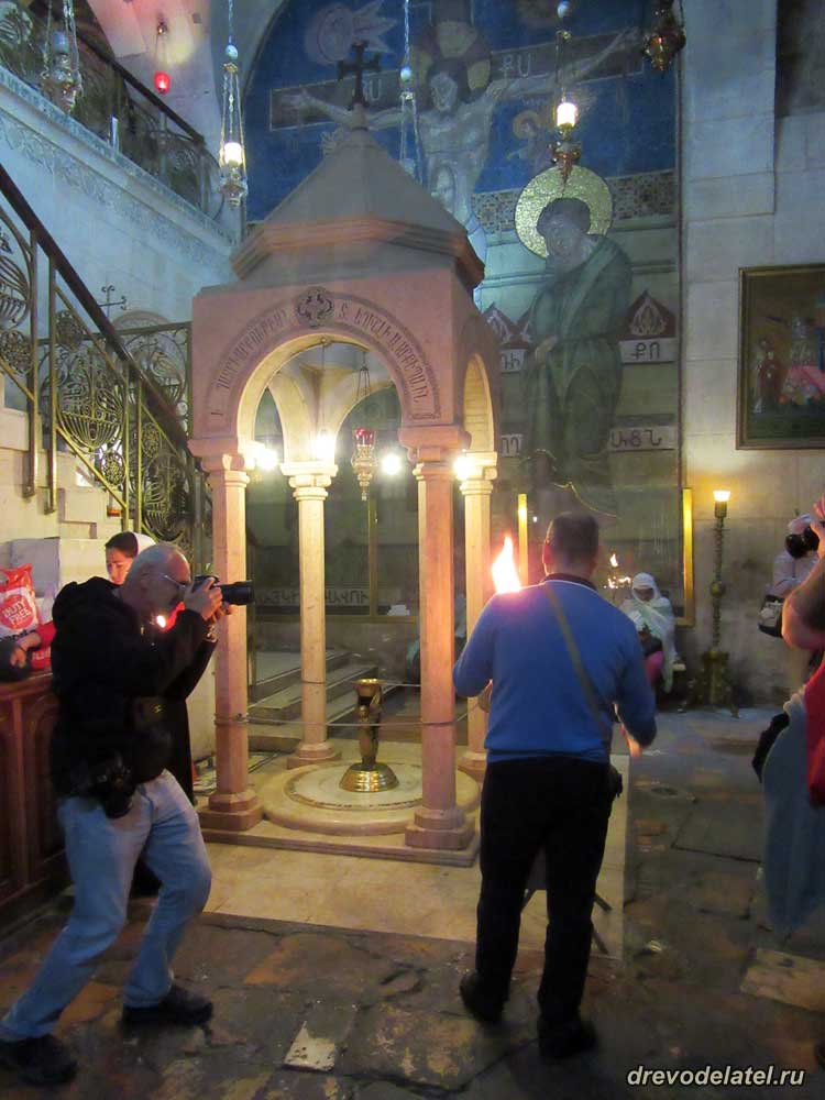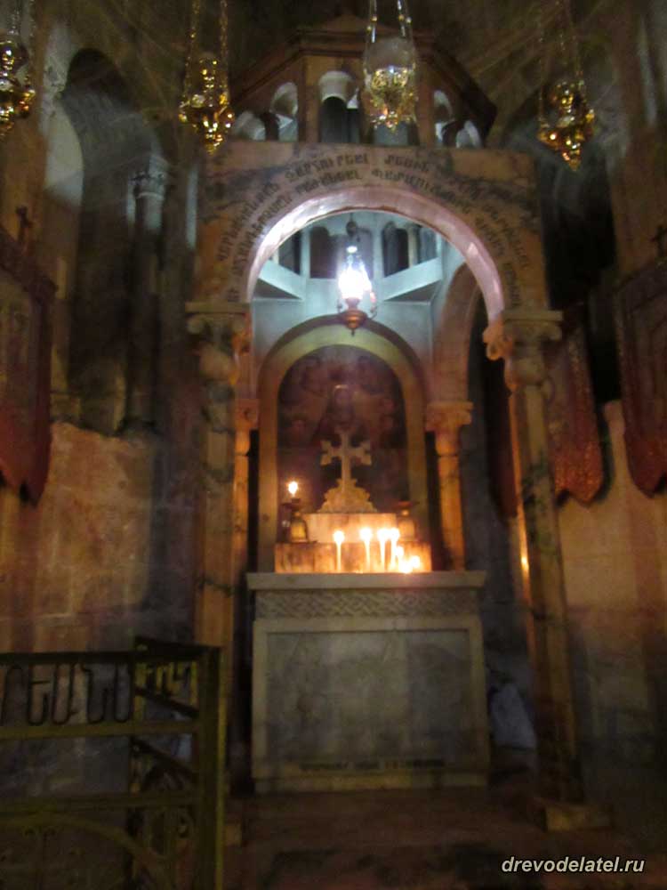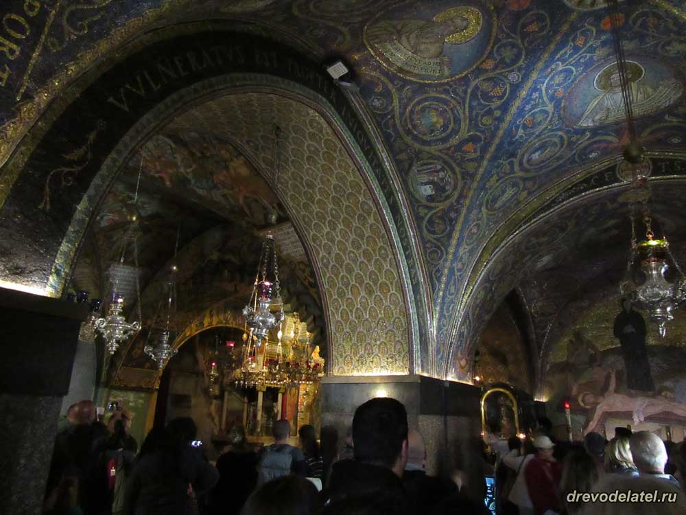 Встаём в очередь к Голгофе. Прямо впереди — католическая Голгофа. Она примечательна алтарём, подаренным герцогом Медичи в XVI веке.