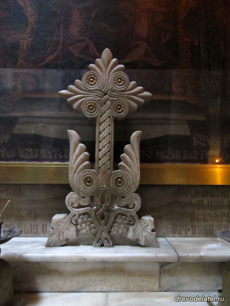 Мраморный крест у иконы Богородицы