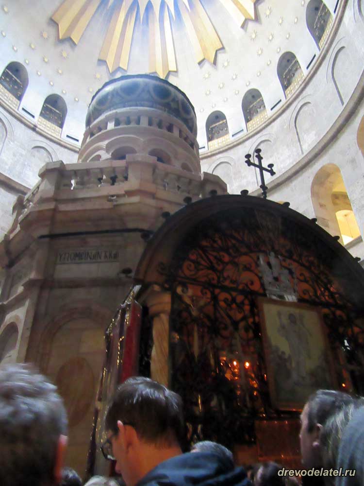 Сначала мы встали в очередь в Кувуклию (в переводе с греческого — покой, опочивальня), чтобы поклониться Гробу Господню, затем поднялись и поклонились Голгофе, потом обошли весь храм, осматриваясь и впитывая увиденное глазами и душой, и затем уже я достал фотоаппарат и читалку с закачанным в неё путеводителем, чтобы сфотографировать всё на память и прочитать про те места, которым мы поклонились. Вход и фотографирование в Храме Гроба Господня, как и во многих других местах, бесплатные.