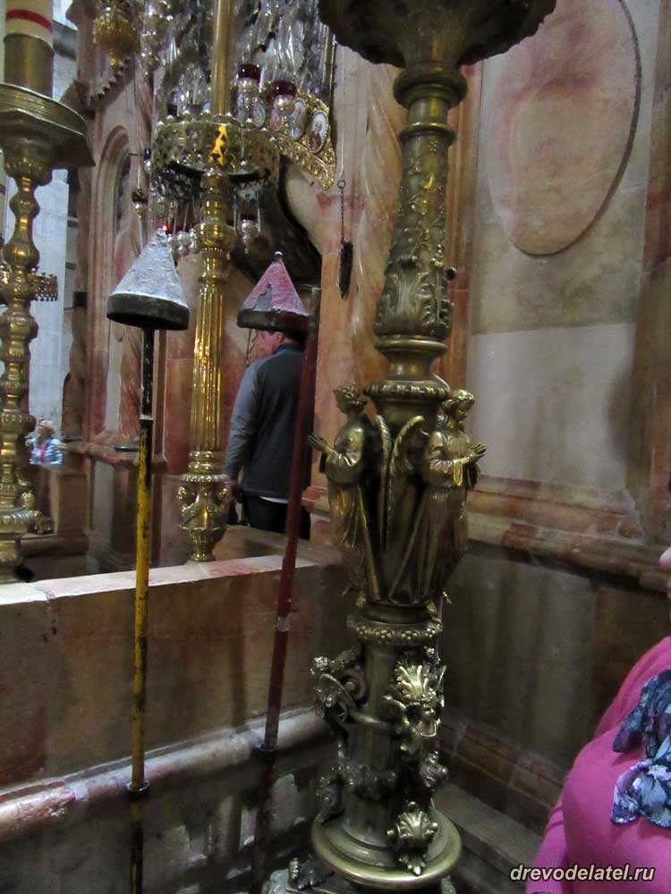 Фрагмент старинного подсвечника у входа в Кувуклию