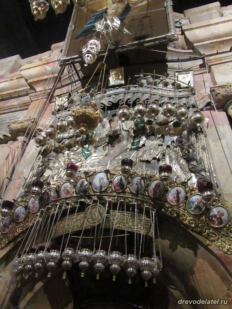 Иконы и лампады у входа в Кувуклию
