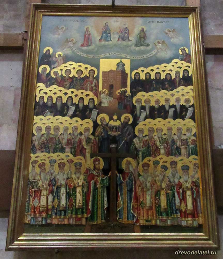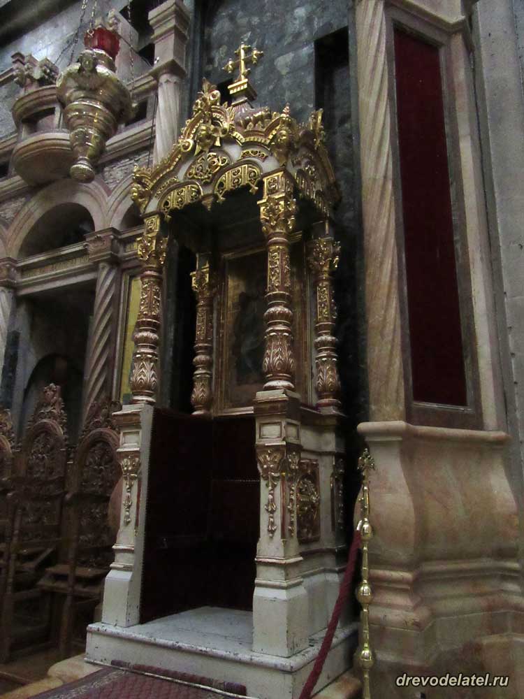 Из Капеллы Адама идём в центр Храма, огороженный греческими перегородками — Кафоликон. По утрам Кафоликон может быть закрыт на уборку.